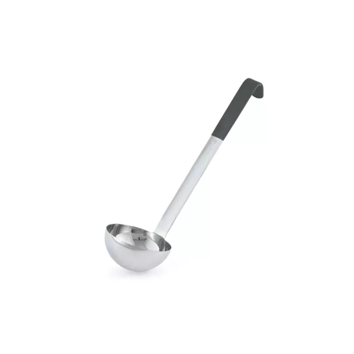 Now with Agion - nature’s antimicrobial. Accurate bowl dimensions ensure consistent capacities. Capacities are clearly stamped on product for easy identification. Heavy-gauge stainless steel shaft and bowls for longer life. Mirror-finished bowls, satin finished handles. Handles available in all stainless steel or black plastisol grip for comfort and safety. Coated handle is heat resistant up to 180F. One-piece construction for easy cleaning. Hooked handle to prevent sliding and for easy storage. Jacob’s Pride lifetime warranty does not cover Kool- Touch coating.