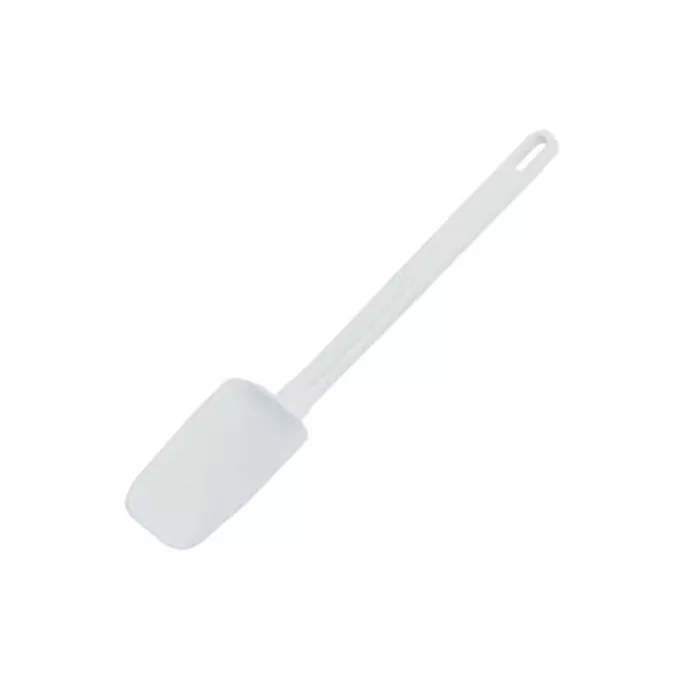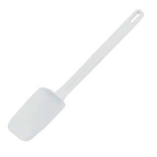 Spoon shaped blade for convenient scooping of food products. Thermoplastic blade and strong polypropylene handle molded together to form a sanitary seal. Flexible blade retains its shape up to 212F. Dishwasher safe. USA made.