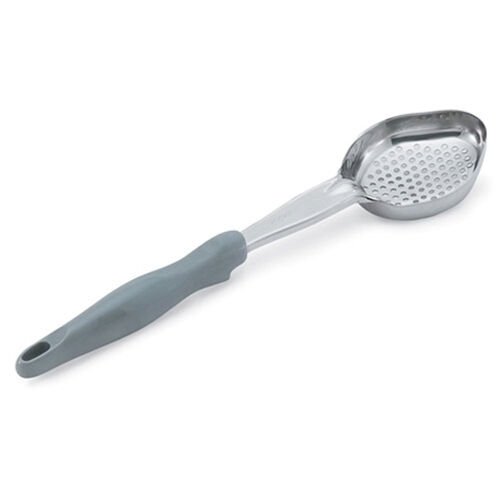 Reduce waste and maximize serving efficiency. Capacities clearly stamped on shaft for easy size identification. One-piece construction is durable and sanitary. Textured handle surface prevents slippage while in use. Color coded for quick size identification. High temperature patented nylon handle - heat resistant to 450°F (232°C). Mirror-finished stainless steel shafts and bowls are resistant to corrosion. Built-in stopper notch prevents Spoodle utensils from sliding into food product. Ergonomic design offers comfort and reduces hand fatigue. NSF certified.