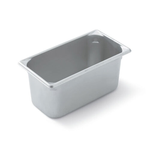Super Pan V Third Size Food Pan, 6'' deep, 22 gauge 300 series stainless steel, reinforced pour corners, reverse formed flattened edges, anti-jamming design, NSF, USA made