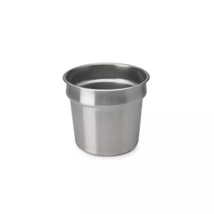 Satin-finished 300 series stainless steel. 6" (15.2 cm) depth under the shoulder. Sharp radius between sleeves rests securely in opening without tipping.