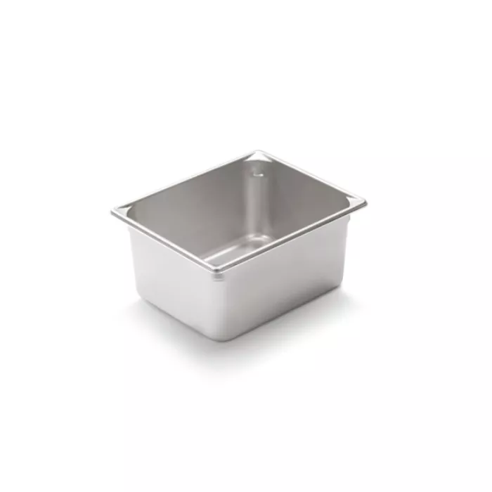 22 gauge, 300 series stainless steel pans with newly designed pour corners, up to 300% stronger, will resist dents and dings in the toughest kitchen environments.