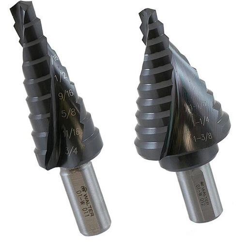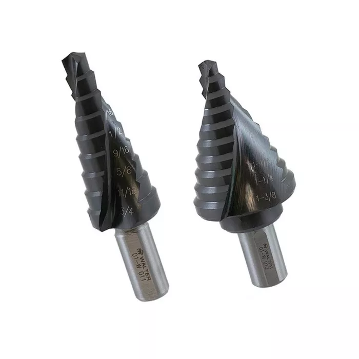 - L'ensemble comprend (1) 13 forets étagés de 1/8" à 1/2", (1) 12 forets étagés de 3/16" à 7/8" et (1) 10 forets étagés de 1/4" à 1-3/8"