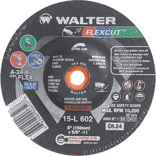 - Meules flexibles Flexcut(MC) de 4 1/2" et 5" avec le système de remplacement rapide unique Spin-on pour plus de confort et une productivité maximale