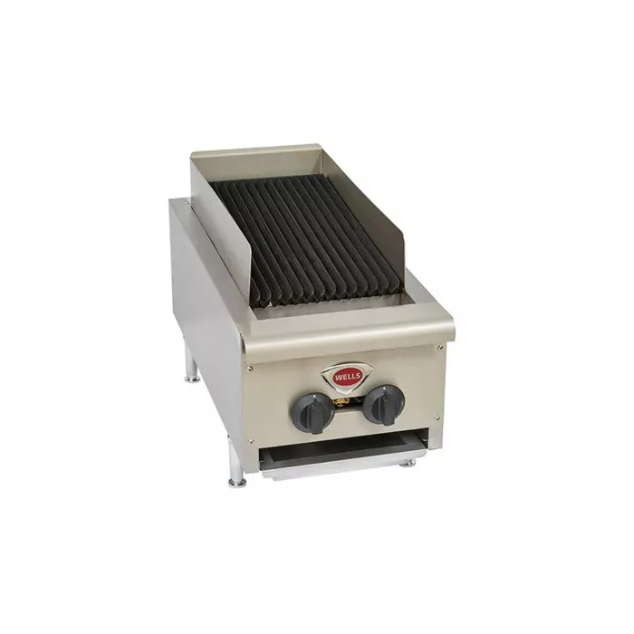 Wells HD Gas Countertop Char broilers are a perfect match with the Wells HD Gas Hot Plates and HD Gas Griddles. The HD Gas Char Broilers Series features extra heavy-duty cast iron burners, cast-iron radiants and cast-iron top grates for higher heat, consistent temperatures and quicker recovery. Cooking Surface 12″W x 30″D, Natural Gas, 40,000 BTU/hour.