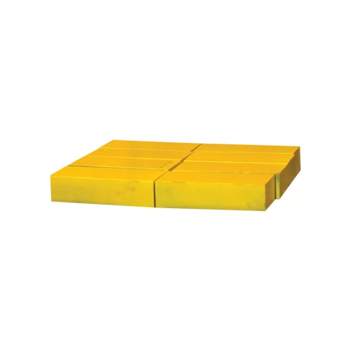 - Envoyé habituellement en barres individuelles de 50 lb, de 3" x 5" x 12" (huit barres en tout)