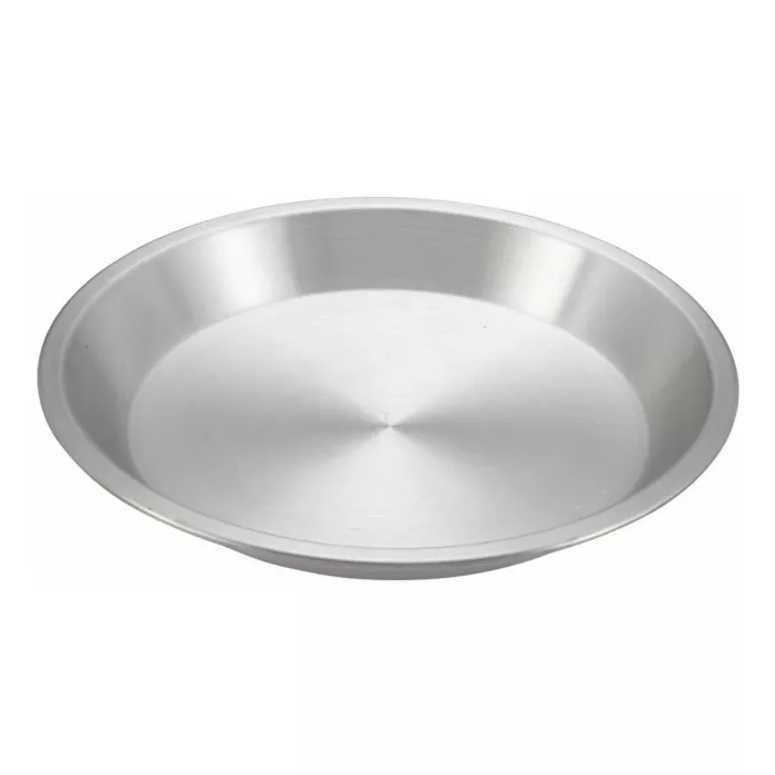 The Winco APPL-10 pie pan will help you create perfectly round pies for your patrons to enjoy. It is constructed from aluminum and has a 10-inch diameter.