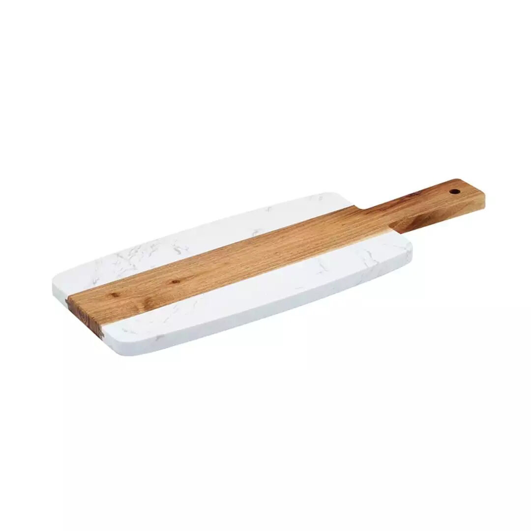 • The balance of white marble and acacia wood is perfect in both sophisticated and rustic settings