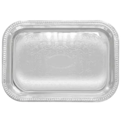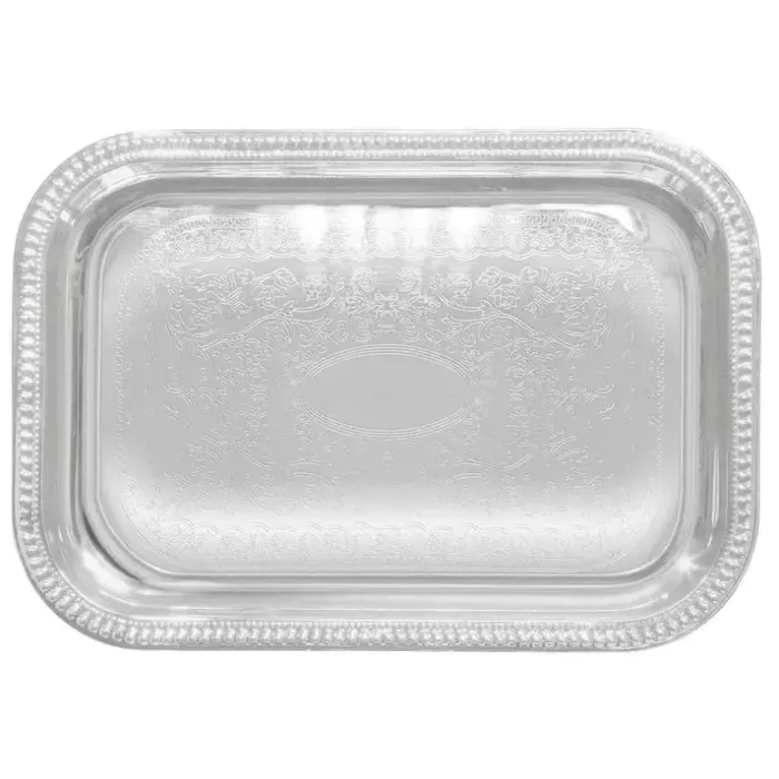 The classic gadroon edge and traditional engraving of these chrome-plated trays are perfect for tea and coffee service, as well as pastries, appetizers and desserts.