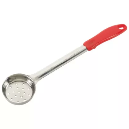 Designed to measure and serve exact portions, this 2-ounce spoon helps in maintaining portion control and ensuring uniformity in food preparation. The vibrant red color not only aids in easy identification but also aligns with color-coding practices to prevent cross-contamination.