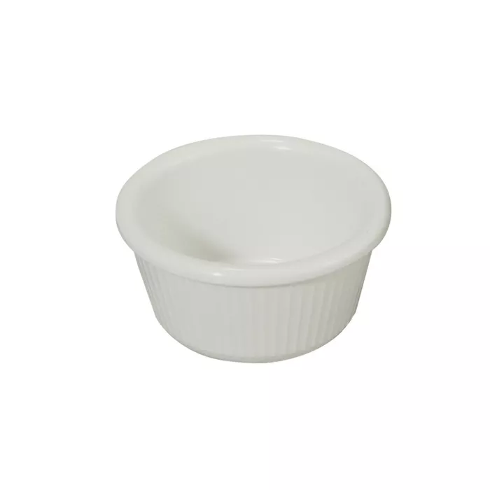 Classic White Finish: The timeless white color complements any table setting or kitchen décor, adding a touch of elegance to your culinary presentation. Whether you're serving in a restaurant, catering event, or at home, this ramekin's crisp white exterior will effortlessly blend in with your style.