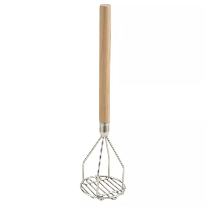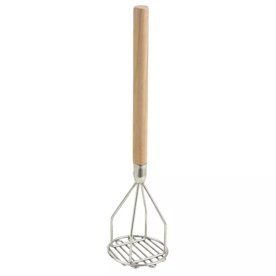 This nickel-plated steel wire potato masher is the perfect solution to having restaurant-quality mashed potatoes. Complete with wooden handle.