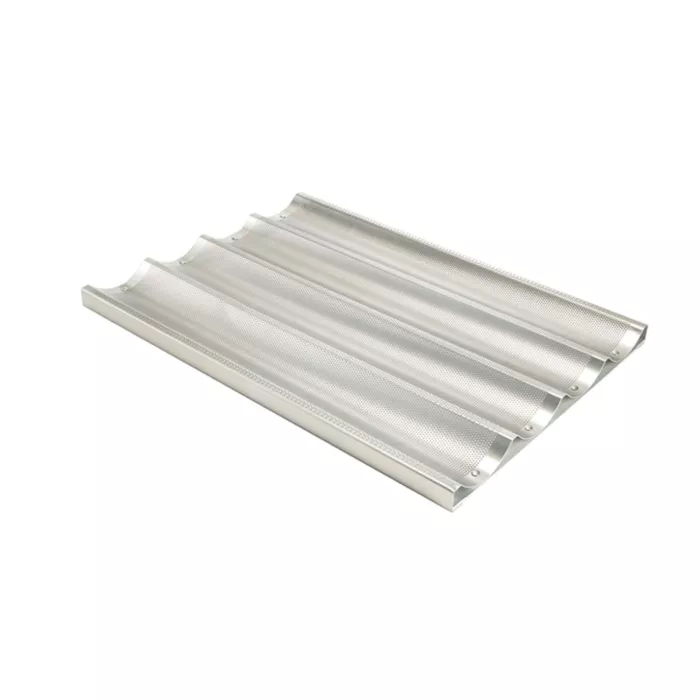 Serve up warm and fresh long rolls with the sturdy, commercial-grade baguette pans by Winco®. Each compartment cradles a baguette – up to six with the largest size pan – and the perforations allow air circulation for crispy crusts while the inside stays soft