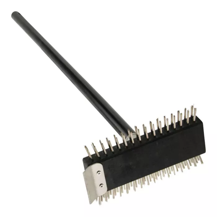 • Stiff stainless steel wire bristles effortlessly clean heavy carbon deposits and oven residue