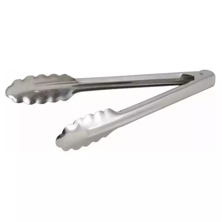 Winco 9" Scalloped Utility Tongs, Stainless Steel