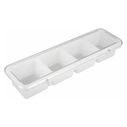 4 compartment bar caddy, plastic with cover, 18" x 5" x 3"