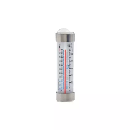 Dual temperature display (C and F). Wide temperature range -20° to 80° F and -28° to 26° C. Clean with a damp cloth. DO NOT use the thermometer over the operating temperature range. DO NOT subject the unit to extreme temperature change.
