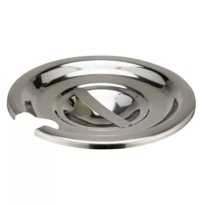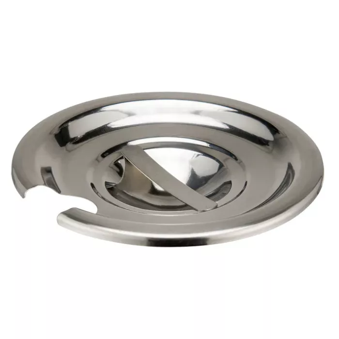 The Winco Stainless Steel Inset Cover for 2.5 Qt Containers (INS-2.5) with Handle.