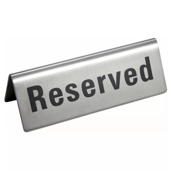 Stainless steel 'reserved' sign perfect for restaurant reservations.