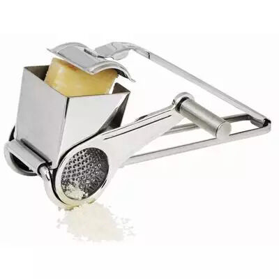 - 18/8 stainless steel rotary grater with one (1) drum for grating fine cheeses