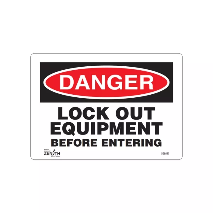 Enseigne «Lock Out Equipment Before Entering»