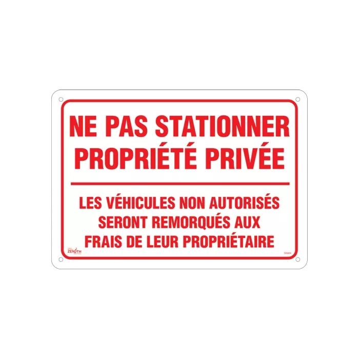 Enseigne « Ne pas stationner propriété privée »