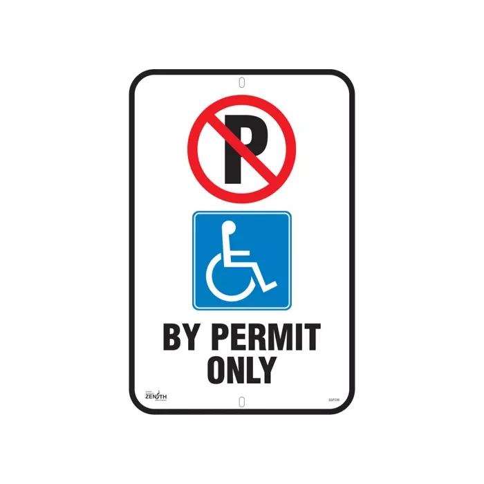 By Permit Only with No Parking & Handicap Pictograms