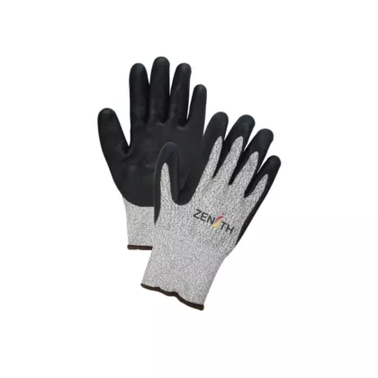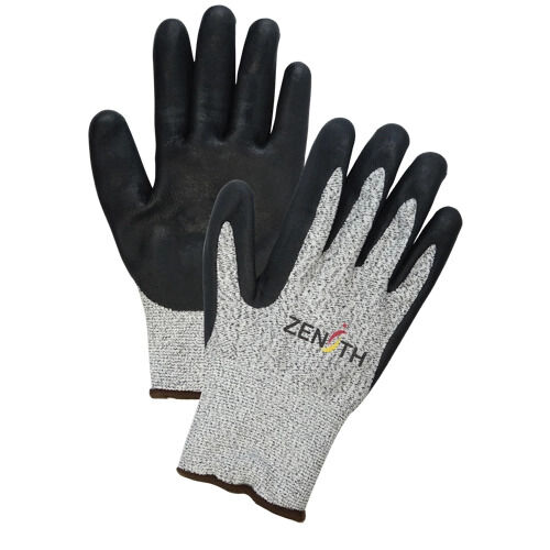 - Paume enduite de mousse de nitrile offrant une excellente prise dans des conditions légèrement huileuses, graisseuses et humides