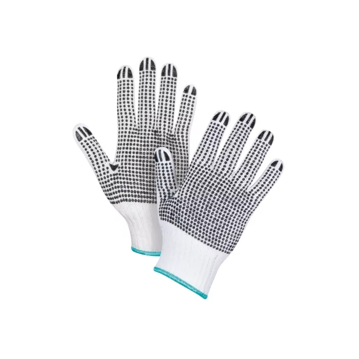 Zenith Safety Products Gants tricotés deux côtés à pois, T-Grand, Poly/coton, Deux côtés, 7 Calibre, Blanc