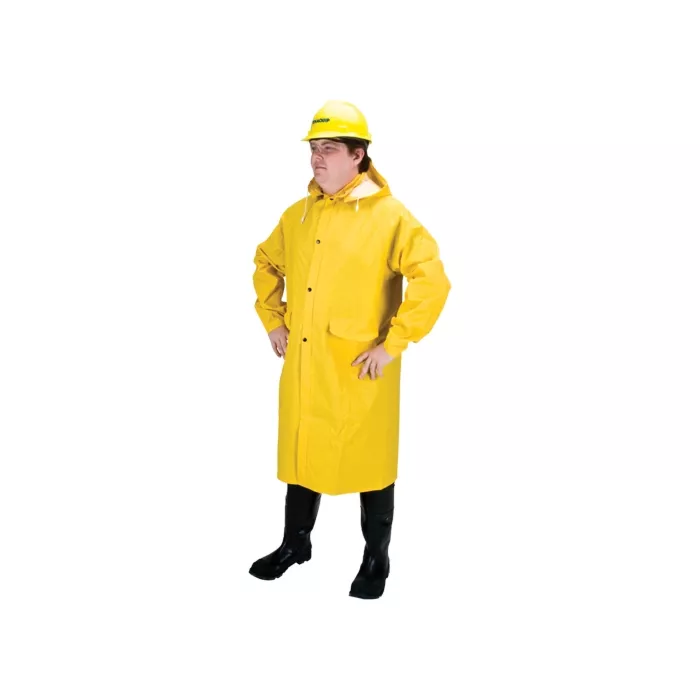 - Manteau long de 47" muni d'une fermeture sous pattes avec boutons-pression en forme de dôme, de deux poches appliquées, d'un col en velours côtelé et d'un capuchon détachable