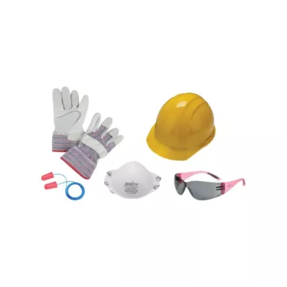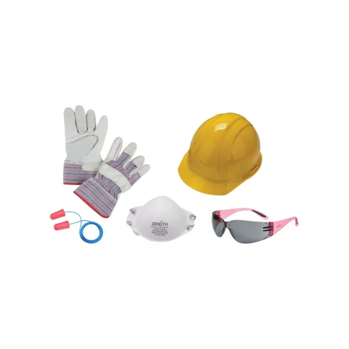 - Comprend: Casque de sécurité, lunettes de sécurité, gants de travail, bouchons d'oreilles et respirateur