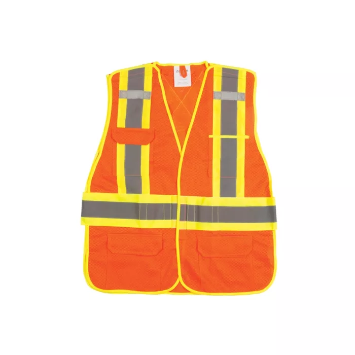 - Tissu à mailles en polyester ignifugé, fluorescent, léger et confortable; offre une visibilité le jour et une résistance aux flammes