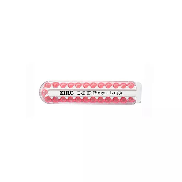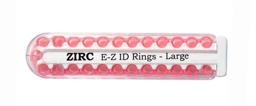 Smooth rounded rings in an easy-to-use dispenser for colour coding instruments.