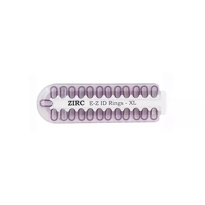 Smooth rounded rings in an easy-to-use dispenser for colour coding instruments.