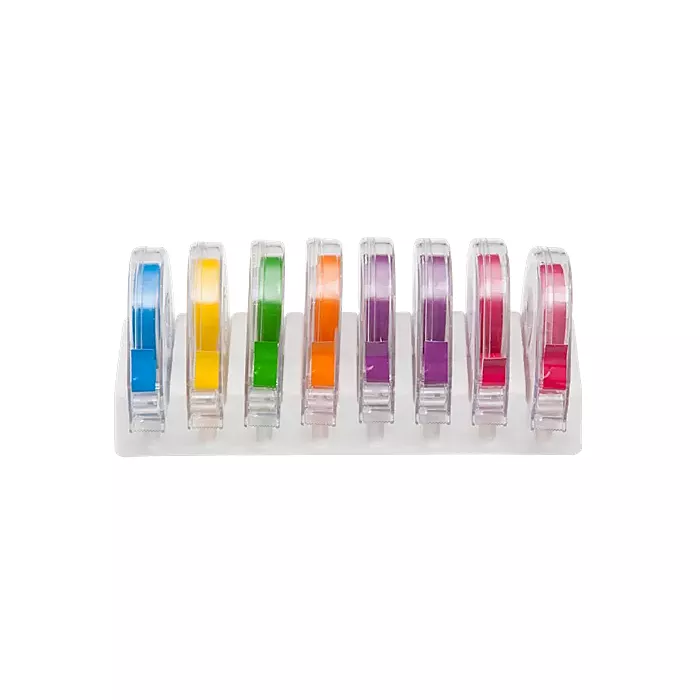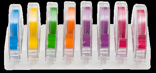 ID tape system comes with eight 3 ft. rolls of coloured tape and a rack that holds them organized and accessible for use.