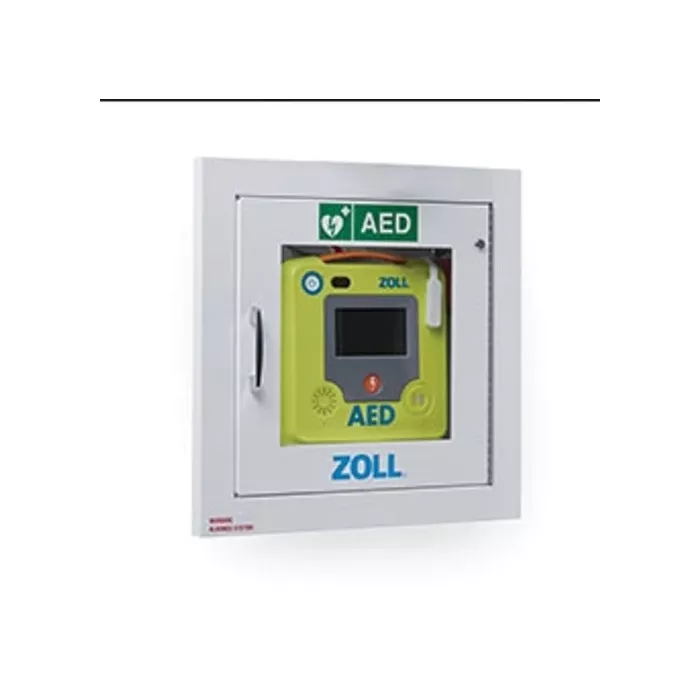 Keep your ZOLL AED 3 defibrillator secure and easily accessible for medical emergencies with a battery-operated, alarmed wall cabinet. It holds a ZOLL AED 3, plus a backup set of electrodes and a backup battery should you need them. Fully-recessed for less intrusive storage. Includes alarm, AED label set, and installation instructions.